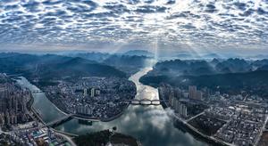 (251217) -- BEIJING, 17 diciembre, 2025 (Xinhua) -- Vista aérea tomada con un dron el 15 de diciembre de 2025 del paisaje invernal de Sanjiangkou, en el distrito de Pingle, en la región eutónoma de la etnia zhuang de Guangxi, en el sur de China. (Xinhua/Yu Xiangquan) (jg) (da) (vf)