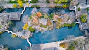 (251217) -- BEIJING, 17 diciembre, 2025 (Xinhua) -- Vista aérea tomada con un dron el 16 de diciembre de 2025 del paisaje invernal en el Jardín del Administrador Humilde, en Suzhou, en la provincia de Jiangsu, en el este de China. (Xinhua/Yang Suping) (jg) (da) (vf)