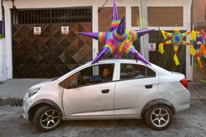 (251217) -- CIUDAD DE MEXICO, 17 diciembre, 2025 (Xinhua) -- Imagen del 16 de diciembre de 2025 de personas comprando una piñata frente a un taller familiar, en la Ciudad de México, capital de México. La piñata, tradicionalmente elaborada con la forma de una estrella de siete puntas, está llena de dulces y pequeños obsequios, aportando alegría y espíritu festivo a las celebraciones. (Xinhua/Francisco Cañedo) (ah) (ra) (vf)