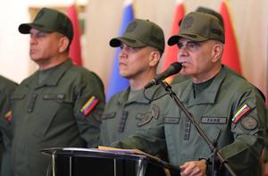 (251217) -- CARACAS, 17 diciembre, 2025 (Xinhua) -- Imagen proveída por el Ministerio para la Defensa de Venezuela del ministro venezolano de Defensa, Vladimir Padrino López (d), hablando durante una conferencia de prensa, en Caracas, Venezuela, el 17 de diciembre de 2025. Padrino López afirmó el miércoles que Estados Unidos evidencia una desesperación en el manejo de su política exterior hacia Venezuela, tras recientes declaraciones del presidente estadounidense, Donald Trump, quien ordenó un bloqueo naval contra el país sudamericano. (Xinhua/Ministerio para la Defensa de Venezuela) (ms) (ah) (ra) (vf)
