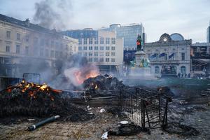 (251218) -- BRUSELAS, 18 diciembre, 2025 (Xinhua) -- Imagen del 18 de diciembre de 2025 de una vista después de una protesta de agricultores, en Bruselas, Bélgica. Miles de agricultores de toda Europa se manifestaron el jueves cerca del Parlamento Europeo y del Edificio Europa en Bruselas mientras los líderes de la Unión Europea se reunían para una cumbre, con un acuerdo comercial largamente negociado con el bloque sudamericano Mercosur en la agenda. (Xinhua/Peng Ziyang) (jg) (ah) (vf)