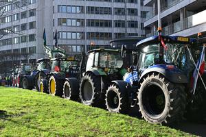 (251218) -- BRUSELAS, 18 diciembre, 2025 (Xinhua) -- Tractores bloquean una calle durante una protesta cerca del Edificio Europa, en Bruselas, Bélgica, el 18 de diciembre de 2025. Miles de agricultores de toda Europa se manifestaron el jueves cerca del Parlamento Europeo y del Edificio Europa en Bruselas mientras los líderes de la Unión Europea se reunían para una cumbre, con un acuerdo comercial largamente negociado con el bloque sudamericano Mercosur en la agenda. (Xinhua/Lyu You) (jg) (ah) (vf)