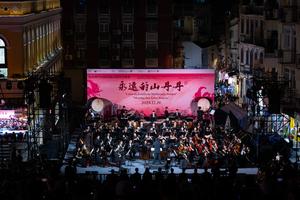 (251219) — MACAO, 19 diciembre, 2025 (Xinhua) — Imagen del 19 de diciembre de 2025 de un concierto para celebrar el 26º aniversario del regreso de Macao a la madre patria, en Macao, en el sur de China. Titulado “Lirios Estrella de la Mañana por Siempre”, el concierto se llevó a cabo aquí el viernes. (Xinhua/Cheong Kam Ka) (jg) (da) (vf)