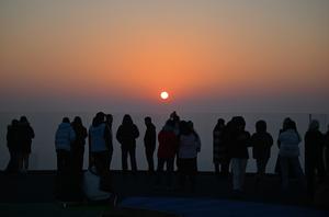 (251221) -- TIANJIN, 21 diciembre, 2025 (Xinhua) -- Imagen del 17 de diciembre de 2025 de visitantes observando el atardecer en la plataforma de observación Jinwan Yunding, en el distrito Heping de Tianjin, en el norte de China. Recientemente, la plataforma de observación Jinwan Yunding, situada en la plaza Jinwan, en el distrito Heping de Tianjin, ha comenzado a funcionar. Los visitantes pueden subir a la azotea, a 300 metros de altura, para contemplar la vista urbana de Tianjin. (Xinhua/Li Ran) (oa) (da)