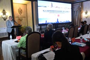 (251220) -- LA HABANA, 20 diciembre, 2025 (Xinhua) -- Imagen del 19 de diciembre de 2025 del viceministro de Cultura cubano, Fernando León (i-atrás), pronunciando un discurso en un encuentro entre representantes de China y Cuba, en La Habana, capital de Cuba. Cuba participará en la XXII Feria Internacional de Industrias Culturales de China, a celebrarse en mayo del próximo año en la ciudad china de Shenzhen, por lo que una delegación de la nación asiática llegó a La Habana para promover las potencialidades del evento. (Xinhua/Joaquín Hernández) (jh) (jg) (da)