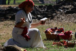(251221) -- SAN SALVADOR, 21 diciembre, 2025 (Xinhua) -- Una mujer indígena participa en una ceremonia maya por la celebración del Solsticio de Invierno en el parque arqueológico Cihuatán, en el departamento de San Salvador, El Salvador, el 21 de diciembre de 2025. (Xinhua/Alexander Peña) (ap) (oa) (da)