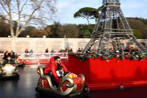 (251221) -- ROMA, 21 diciembre, 2025 (Xinhua) -- Imagen del 20 de diciembre de 2025 de personas viajando en un vehículo miniatura en la Villa Borghese, en Roma, Italia. La Villa Borghese, un parque urbano en Roma, se ha llenado de ambiente festivo a medida que se acerca la Navidad. (Xinhua/Li Jing) (da) (ah)