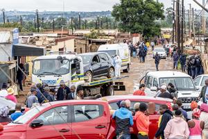 (251221) -- JOHANNESBURGO, 21 diciembre, 2025 (Xinhua) -- Personas son vistas en el sitio de un tiroteo, en Bekkersdal, Sudáfrica, el 21 de diciembre de 2025. Al menos nueve personas murieron y otras diez resultaron heridas en un tiroteo en el municipio de Bekkersdal, cerca de Johannesburgo, la ciudad más grande y centro económico de Sudáfrica, informó el domingo la Policía local. (Xinhua/Shiraaz Mohamed) (oa) (ah)