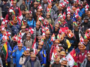 (251222) -- LA PAZ, 22 diciembre, 2025 (Xinhua) -- Mineros cooperativistas de la ciudad de Potosí participan en una multitudinaria marcha para exigir la abrogación del Decreto Supremo 5503, en la ciudad de La Paz, Bolivia, el 22 de diciembre de 2025. Bolivia registró el lunes bloqueos de caminos y carreteras en seis de sus nueve departamentos protagonizado por varios sectores en rechazo al fin de la subvención a los combustibles, una de las medidas centrales del paquete económico aprobado por el Gobierno del presidente Rodrigo Paz Pereira para enfrentar la crisis del país. (Xinhua/Javier Mamani) (jm) (ah) (oa) (vf)