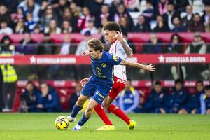 (251222) -- GIRONA, 22 diciembre, 2025 (Xinhua) -- Imagen del 21 de diciembre de 2025 de Pablo Barrios (i), de Atlético de Madrid, disputando el balón con Axel Witsel, de Girona FC, durante el partido de fútbol de LaLiga entre Girona FC y Atlético de Madrid en el Estadio Montilivi, en Girona, España. (Xinhua/Joan Gosa) (ah) (oa) (vf)