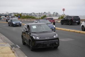 (251222) -- MONTEVIDEO, 22 diciembre, 2025 (Xinhua) -- Un vehículo eléctrico circula por la rambla, en Montevideo, capital de Uruguay, el 22 de diciembre de 2025. La venta de vehículos eléctricos en Uruguay se disparó en 2025 y consolidó al país entre los líderes regionales en la adopción de la movilidad eléctrica. (Xinhua/Nicolás Celaya) (nc) (ah) (oa) (vf)