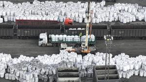 (251223) — ERENHOT, 23 diciembre, 2025 (Xinhua) — Vista aérea tomada con un dron el 10 de octubre de 2025 de un camión cargando mercancías, en Erenhot, en la región autónoma de Mongolia Interior, en el norte de China. Erenhot, el mayor puerto terrestre de la frontera entre China y Mongolia, es un punto clave del Corredor Económico China-Mongolia-Rusia. A fecha de 22 de diciembre, el volumen de tráfico de pasajeros entrantes y salientes y el número de vehículos que transitaron por Erenhot alcanzaron los 2,753 millones y los 741.000, respectivamente, lo que supone un aumento del 8,8 por ciento y del 12,1 por ciento en comparación con el mismo período del año pasado. (Xinhua/Ma Jinrui) (oa) (ah) (vf)
