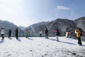 (251225) -- HANGZHOU, 25 diciembre, 2025 (Xinhua) -- Turistas disfrutan del paisaje después de la nevada en el área escénica de la montaña Daming, en el distrito de Lin'an de Hangzhou, en la provincia de Zhejiang, en el este de China, el 25 de diciembre de 2025. El área escénica de la montaña Daming de Hangzhou registró una nevada debido al aire frío reciente. (Xinhua/Xu Yu) (da) (ra) (vf)