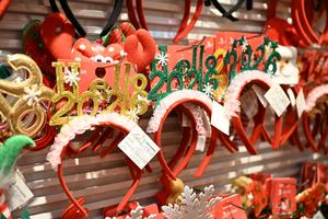 (251224) -- YIWU, 24 diciembre, 2025 (Xinhua) -- Imagen del 17 de diciembre de 2025 de decoraciones para el cabello con la leyenda "Hola 2026" exhibidas en la Ciudad de Comercio Internacional de Yiwu, en Yiwu, en la provincia de Zhejiang, en el este de China. Mientras los compradores de todo el mundo siguen buscando regalos de última hora, el verdadero pulso de la economía navideña mundial late con fuerza en Yiwu, en el este de China, el famoso "supermercado del mundo". (Xinhua/Liu Che) (jg) (da) (vf)