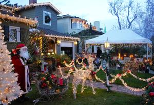 (251225) -- SAN FRANCISCO, 25 diciembre, 2025 (Xinhua) -- Imagen del 24 de diciembre de 2025 de un residente arreglando decoraciones navideñas en el patio de su casa en Eucalyptus Avenue de San Carlos, en el Area de la Bahía de San Francisco de California, Estados Unidos. (Xinhua/Wu Xiaoling) (jg) (ah) (vf)