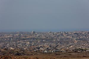 (251226) -- SDEROT, 26 diciembre, 2025 (Xinhua) -- Imagen del 25 de diciembre de 2025 de edificios destruidos en la Franja de Gaza, vistos desde la frontera sur de Israel con la Franja de Gaza. (Xinhua/Gil Cohen Magen) (jg) (da) (vf)