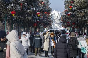 (251227) -- HARBIN, 27 diciembre, 2025 (Xinhua) -- Personas visitan la 38 Exposición Internacional de Arte de Esculturas de Nieve de la Isla del Sol, en Harbin, en la provincia de Heilongjiang, en el noreste de China, el 27 de diciembre de 2025. La 38 Exposición Internacional de Arte de Esculturas de Nieve de la Isla del Sol se inauguró aquí para su prueba el sábado, con un área de exposición de 1,5 millones de metros cuadrados y un volumen de utilización de nieve de 120.000 metros cúbicos. (Xinhua/Zhang Tao) (oa) (da)