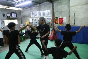 (251226) -- YANGON, 26 diciembre, 2025 (Xinhua) -- U Khin Maung Nyein (c) instruye a los estudiantes en su centro de artes marciales chinas, en Yangón, Myanmar, el 26 de diciembre de 2025. Con los pies descalzos golpeando el suelo de espuma a un ritmo constante, los niños ruedan, patean y recuperan el equilibrio con expresiones concentradas muy superiores a su edad dentro de una modesta sala de entrenamiento en Myanmar. Aquí, el kung fu no es solo un ejercicio físico, sino una lección de disciplina, confianza y perseverancia. (Xinhua/Myo Kyaw Soe) (oa) (ra) (vf)