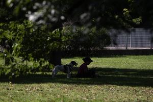 (251229) -- BUENOS AIRES, 29 diciembre, 2025 (Xinhua) -- Una mujer y su perro descansan en un parque durante una ola de calor, en la ciudad de Buenos Aires, capital de Argentina, el 29 de diciembre de 2025. (Xinhua/Martín Zabala) (mz) (oa) (ah) (vf)