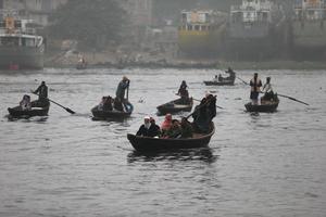 (251229) -- DHAKA, 29 diciembre, 2025 (Xinhua) -- Barcos transportan pasajeros a través del Río Buriganga en medio de la niebla invernal, en Dhaka, Bangladesh, el 29 de diciembre de 2025. (Xinhua/Habibur Rahman) (ah) (oa) (vf)