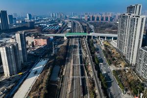 (251228) — WUHAN, 28 diciembre, 2025 (Xinhua) — Vista aérea tomada con un dron el 28 de diciembre de 2025 de un tren bala circulando bajo la sección norte de la Primera Carretera Gutian, en Wuhan, en la provincia de Hubei, en el centro de China. La sección norte de la Primera Carretera Gutian en Wuhan se completó oficialmente y se abrió al tráfico el domingo. La carretera de 2,78 kilómetros, que cruzará el ferrocarril de alta velocidad Shanghai-Chongqing-Chengdu, el ferrocarril Wuhan-Danjiangkou y la tercera carretera de circunvalación de Wuhan, beneficiará a los residentes a lo largo de la ruta. (Xinhua/Wu Zhizun) (ah) (da)