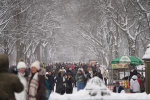 (251228) -- NUEVA YORK, 28 diciembre, 2025 (Xinhua) -- Imagen del 27 de diciembre de 2025 de personas visitando el cubierto de nieve Central Park, en Nueva York, Estados Unidos. (Xinhua/Zhang Fengguo) (ah) (da)