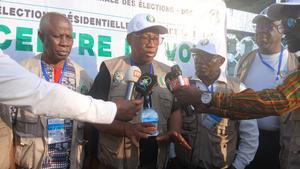 (251229) -- CONAKRY, 29 diciembre, 2025 (Xinhua) -- Imagen del 28 de diciembre de 2025 de un observador de la Comunidad Económica de Estados de Africa Occidental entrevistado por los medios de comunicación en un colegio electoral, en Conakry, capital de Guinea. Guinea comenzó a votar en sus elecciones presidenciales el domingo, con más de 6,8 millones de votantes registrados que se espera que emitan su voto en más de 24.000 colegios electorales de todo el país entre las 7:00 a. m. hora local (0700 GMT) y las 6:00 p. m. (1800 GMT). Se trata de las primeras elecciones presidenciales que se celebran en el país desde que un golpe militar derrocó al expresidente Alpha Condé en septiembre de 2021, lo que supone un paso importante hacia el retorno al orden constitucional. (Xinhua) (oa) (ah) (vf)