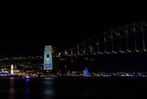 (251231) -- SIDNEY, 31 diciembre, 2025 (Xinhua) -- El Puente del Puerto de Sídney se ilumina con luces blancas mostrando las palabras "Paz" y "Unidad" junto con el símbolo de una paloma, en Sídney, Australia, el 31 de diciembre de 2025. Se guardó un minuto de silencio durante un espectáculo de fuegos artificiales, con el Puente del Puerto iluminado de blanco, para conmemorar a las víctimas del tiroteo masivo ocurrido en la playa Bondi de Sídney. (Xinhua/Ma Ping) (jg) (da) (vf)