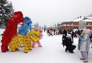 (251231) -- BEIJING, 31 diciembre, 2025 (Xinhua) -- Turistas observan una presentación de la danza de león en un punto escénico, en la ciudad de Mudanjiang, en la provincia de Heilongjiang, en el noreste de China, el 31 de diciembre de 2025. Varias actividades se llevan a cabo en toda China para celebrar el próximo año nuevo. (Xinhua/Sun Tingyi) (ah) (ra) (vf)