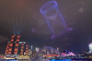 (260101) -- BEIJING, 1 enero, 2026 (Xinhua) -- Imagen del 31 de diciembre de 2025 de un espectáculo de luces con drones llevándose a cabo para celebrar el Año Nuevo, en el distrito de Nan'an de Chongqing, en el suroeste de China. Diversas actividades se llevaron a cabo en todo el país para celebrar el Año Nuevo. (Xinhua/Huang Wei) (jg) (ah) (vf)