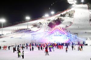 (260101) -- BEIJING, 1 enero, 2026 (Xinhua) -- Imagen del 31 de diciembre de 2025 de personas divirtiéndose durante un evento de celebración de Año Nuevo en la Estación de Esquí Internacional Yuyang de Beijing, en el distrito de Pinggu de Beijing, capital de China. (Xinhua/Ren Chao) (jg) (ah) (vf)