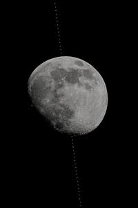 (260101) -- BEIJING, 1 enero, 2026 (Xinhua) -- Imagen compuesta apilada tomada el 31 de diciembre de 2025 en Beijing, China, de la estación espacial china pasando frente a la Luna. (Xinhua/Zhong Yi) (jg) (ah) (vf)