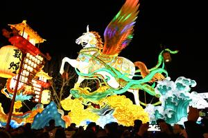 (260101) -- DUNHUANG, 1 enero, 2026 (Xinhua) -- Imagen del 31 de diciembre de 2025 de turistas visitando una feria de linternas en un mercado nocturno, en Dunhuang, en la provincia de Gansu, en el noroeste de China. La feria de linternas comenzó el miércoles aquí atrayendo a numerosos turistas para experimentar el encanto único de Dunhuang. (Xinhua/Zhang Xiaoliang) (jg) (ah) (vf)