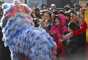 (260101) -- URUMQI, 1 enero, 2026 (Xinhua) -- Artistas de la danza del león interactúan con el público en el Gran Bazar Internacional de Xinjiang, en Urumqi, en la región autónoma de la etnia uygur de Xinjiang, en el noroeste de China, el 1 de enero de 2026. Un evento festivo atrajo a multitudes al Gran Bazar Internacional de Xinjiang el jueves mientras las personas se reunían para celebrar el Año Nuevo. (Xinhua/Wang Fei) (jg) (ah) (vf)