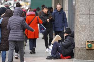 (260101) -- NUEVA YORK, 1 enero, 2026 (Xinhua) -- Imagen del 31 de diciembre de 2025 de un hombre sin hogar sentado en una acera, en Nueva York, Estados Unidos. (Xinhua/Zhang Fengguo) (jg) (ah) (vf)