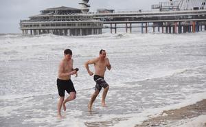 (260101) -- LA HAYA, 1 enero, 2026 (Xinhua) -- Personas participan en un tradicional evento de sumergida para recibir el Año Nuevo, en La Haya, Países Bajos, el 1 de enero de 2026. (Xinhua/Shao Haijun) (da) (ra) (vf)