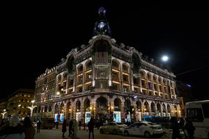 (260101) -- SAN PETERSBURGO, 1 enero, 2026 (Xinhua) -- Imagen del 31 de diciembre de 2025 de un edificio iluminado con luces festivas, en San Petersburgo, Rusia. En la víspera de Año Nuevo, las calles de San Petersburgo fueron decoradas con luces festivas. (Xinhua/Guo Feizhou) (da) (ra) (vf)