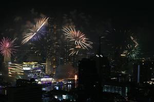 (251231) — BANGKOK, 31 diciembre, 2025 (Xinhua) — Fuegos artificiales explotan sobre el río Chao Phraya en celebración del Año Nuevo, en Bangkok, Tailandia, el 1 de enero de 2026. (Xinhua/Rachen Sageamsak) (jg) (da) (vf)