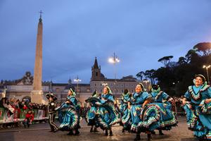 (260102) -- ROMA, 2 enero, 2026 (Xinhua) -- Imagen del 1 de enero de 2026 de bailarines realizando una presentación durante el desfile de Año Nuevo, en Roma, Italia. (Xinhua/Li Jing) (jg) (ra) (vf)