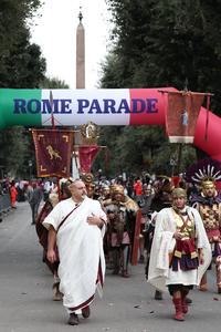 (260102) -- ROMA, 2 enero, 2026 (Xinhua) -- Imagen del 1 de enero de 2026 de personas vestidas de gladiadores romanos marchando durante el desfile de Año Nuevo, en Roma, Italia. (Xinhua/Li Jing) (jg) (ra) (vf)