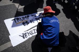 (260103) -- BUENOS AIRES, 3 enero, 2026 (Xinhua) -- Una mujer elabora una pancarta durante una manifestación frente a la Embajada de Estados Unidos, en la ciudad de Buenos Aires, capital de Argentina, el 3 de enero de 2026. Varios gobiernos latinoamericanos, de diferentes signos políticos, condenaron el sábado la agresión lanzada por Estados Unidos contra Venezuela y la captura del presidente venezolano, Nicolás Maduro, y de su esposa, Cilia Flores. (Xinhua/Martín Zabala) (mz) (jg) (ra) (ce)
