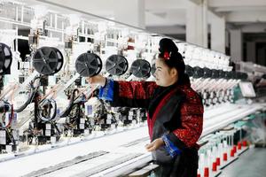 (260104) -- BEIJING, 4 enero, 2026 (Xinhua) -- Una trabajadora opera en un taller inteligente de bordado Miao, en el distrito de Shibing de la prefectura autónoma miao y dong de Qiandongnan, en la provincia de Guizhou, en el suroeste de China, el 4 de enero de 2026. (Xinhua/Tai Shengzhi) (oa) (ah) (ce)