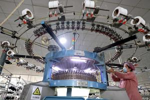 (260104) -- BEIJING, 4 enero, 2026 (Xinhua) -- Una trabajadora opera en una línea de producción textil de una empresa, en el distrito de Shizhong de Zaozhuang, en la provincia de Shandong, en el este de China, el 4 de enero de 2026. (Xinhua/Sun Zhongzhe) (oa) (ah) (ce)