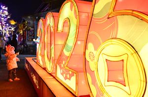 (260103) -- XINING, 3 enero, 2026 (Xinhua) -- Imagen del 2 de enero de 2026 de una niña observando un conjunto de linternas en un área escénica de una ciudad antigua, en el distrito de Huangyuan de Xining, en la provincia de Qinghai, en el noroeste de China. (Xinhua/Qi Zhiyue) (jg) (ra) (ce)