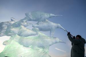 (260103) -- HARBIN, 3 enero, 2026 (Xinhua) -- Un competidor trabaja en una escultura de hielo durante el 37 Concurso Internacional de Esculturas de Hielo de Harbin de China en el Mundo de Hielo y Nieve de Harbin, en Harbin, en la provincia de Heilongjiang, en el noreste de China, el 3 de enero de 2026. El concurso comenzó aquí el viernes. (Xinhua/Zhang Tao) (oa) (jg) (ra) (ce)