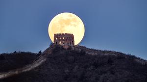 (260103) -- BEIJING, 3 enero, 2026 (Xinhua) -- Imagen del 3 de enero de 2026 de la luna sobre la sección de Panlongshan de la Gran Muralla de Gubeikou, en Beijing, capital de China. La primera superluna de 2026, caracterizada por la inusual proximidad cercana de la Luna a la Tierra, resultando en una apariencia más grande y brillante, se mostró en el cielo el sábado. (Xinhua/Chen Yehua) (jg) (ra) (ce)