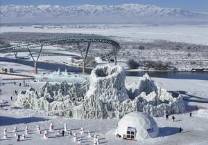 (260103) -- ZHAOSU, 3 enero, 2026 (Xinhua) -- Vista aérea tomada con un dron el 3 de enero de 2026 de personas divirtiéndose en un parque temático de hielo y nieve, en el distrito de Zhaosu, en la prefectura autónoma kazaja de Ili, en la región autónoma uygur de Xinjiang, en el noroeste de China. Aprovechando sus recursos únicos de hielo y nieve en invierno, el distrito de Zhaosu ha desarrollado diversos servicios turísticos invernales para atraer visitantes. (Xinhua/Hu Huhu) (jg) (ra) (ce)