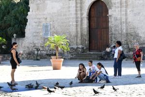 (260104) -- LA HABANA, 4 enero, 2026 (Xinhua) -- Imagen del 3 de enero de 2026 de niños, acompañados por sus familiares, jugando con palomas, en la Plaza de San Francisco de Asís, en La Habana, capital de Cuba. (Xinhua/Joaquín Hernández) (jh) (ah) (oa) (ce)
