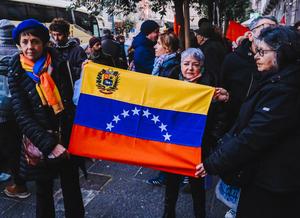 (260104) -- NAPOLES, 4 enero, 2026 (Xinhua) -- Imagen del 3 de enero de 2026 de personas sosteniendo una bandera nacional venezolana durante una manifestación, en Nápoles, Italia. El ataque militar estadounidense contra Venezuela y la captura de su presidente, Nicolás Maduro, ha conmocionado a la comunidad internacional, provocando un flujo constante de condenas y serias preocupaciones en todo el mundo. (Xinhua) (oa) (ah) (ce)