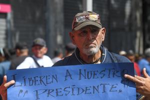 (260103) -- CARACAS, 3 enero, 2026 (Xinhua) -- Un hombre sostiene una pancarta en las inmediaciones del Palacio de Miraflores, en Caracas, capital de Venezuela, el 3 de enero de 2026. Varios gobiernos latinoamericanos, de diferentes signos políticos, condenaron el sábado la agresión lanzada por Estados Unidos contra Venezuela y la captura del presidente venezolano, Nicolás Maduro, y de su esposa, Cilia Flores. (Xinhua/Marcos Salgado) (ms) (oa) (ra) (ce)
